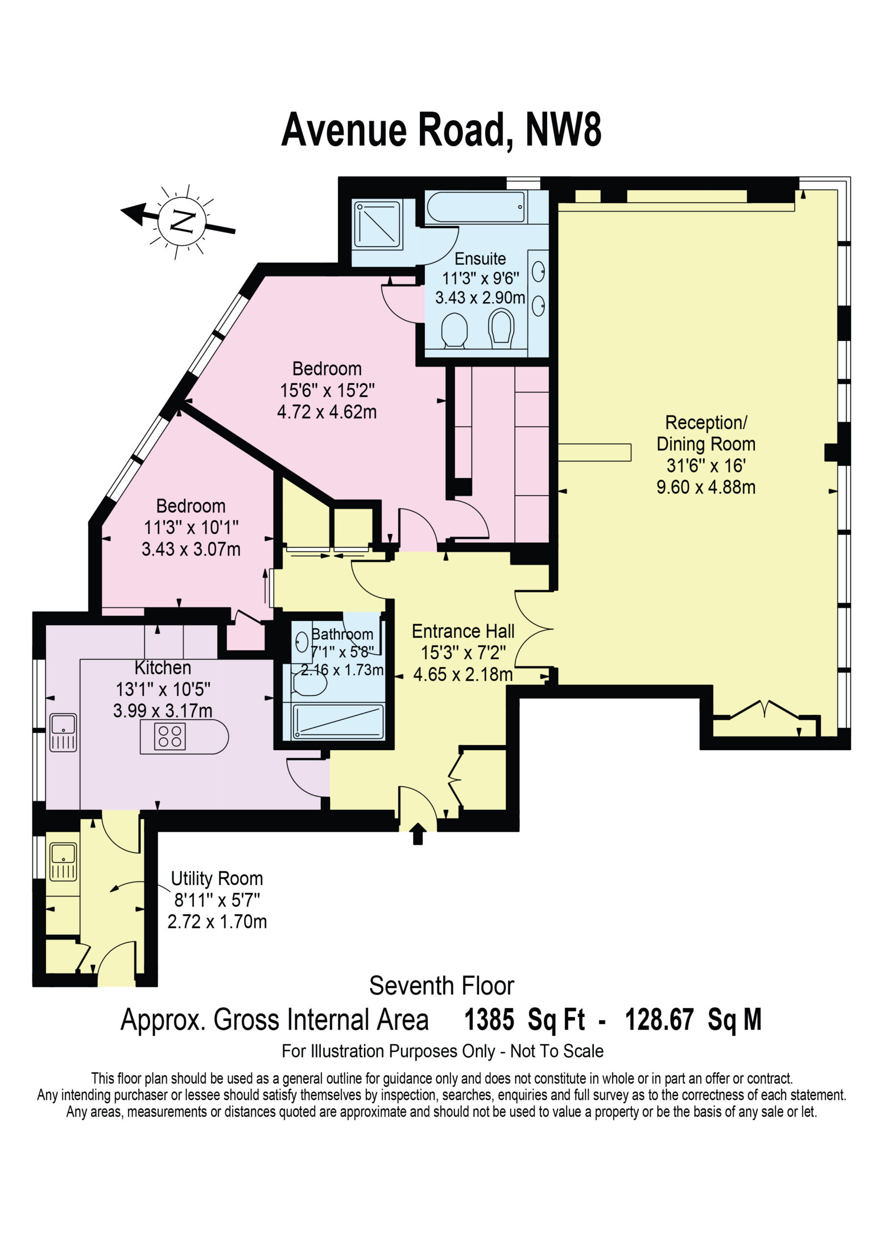 The property comprises an impressive 31 ft double reception room with sensational panoramic views over Regent’s Park and many of London’s iconic buildings, principal bedroom suite with walk-in dressing room and luxury en-suite bathroom, second bedroom suite with en-suite shower room, a stunning bespoke fully fitted kitchen with breakfast bar and separate utility room. The property has the added advantage of two underground parking spaces, 24 hour porterage, recently refurbished entrance lobby, passenger lift, air conditioning, basement storage.