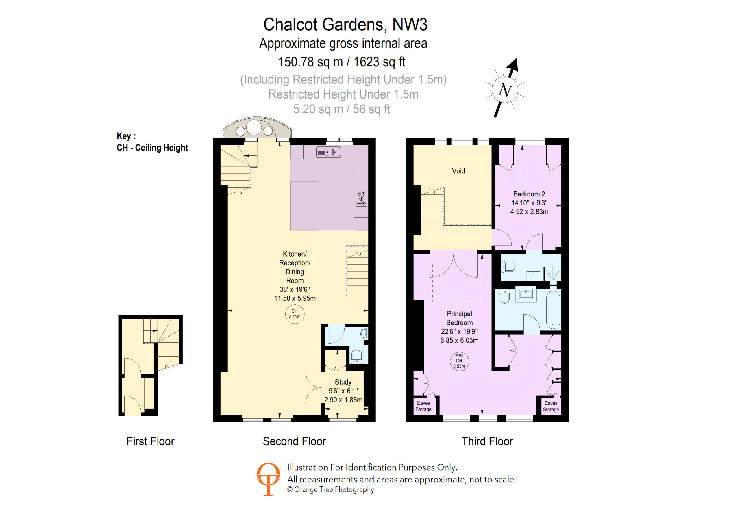 The second floor comprises a contemporary, open-plan kitchen (designed by Neil Lerner) with bespoke cabinetry and fully integrated appliances. The reception space benefits from excellent natural light, solid wood flooring, a separate study room and guest WC. On the floor above, the principal bedroom features a vaulted ceiling with ample in-built wardrobes and en-suite bathroom. The second bedroom also has an en-suite shower room and inbuilt storage. Both bathrooms have been meticulously refurbished using bespoke stone.