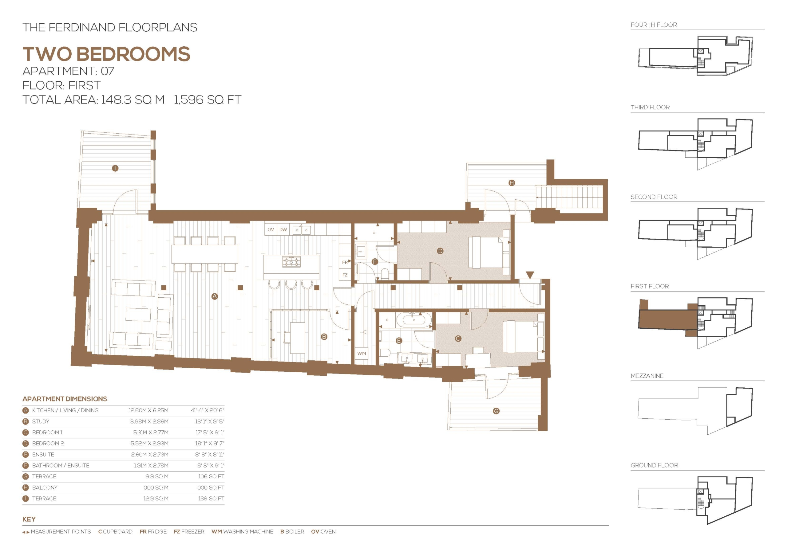 This stunning two bedroom dual aspect apartment, is situated on the first floor of the building and benefits from a separate study area and two terraces.