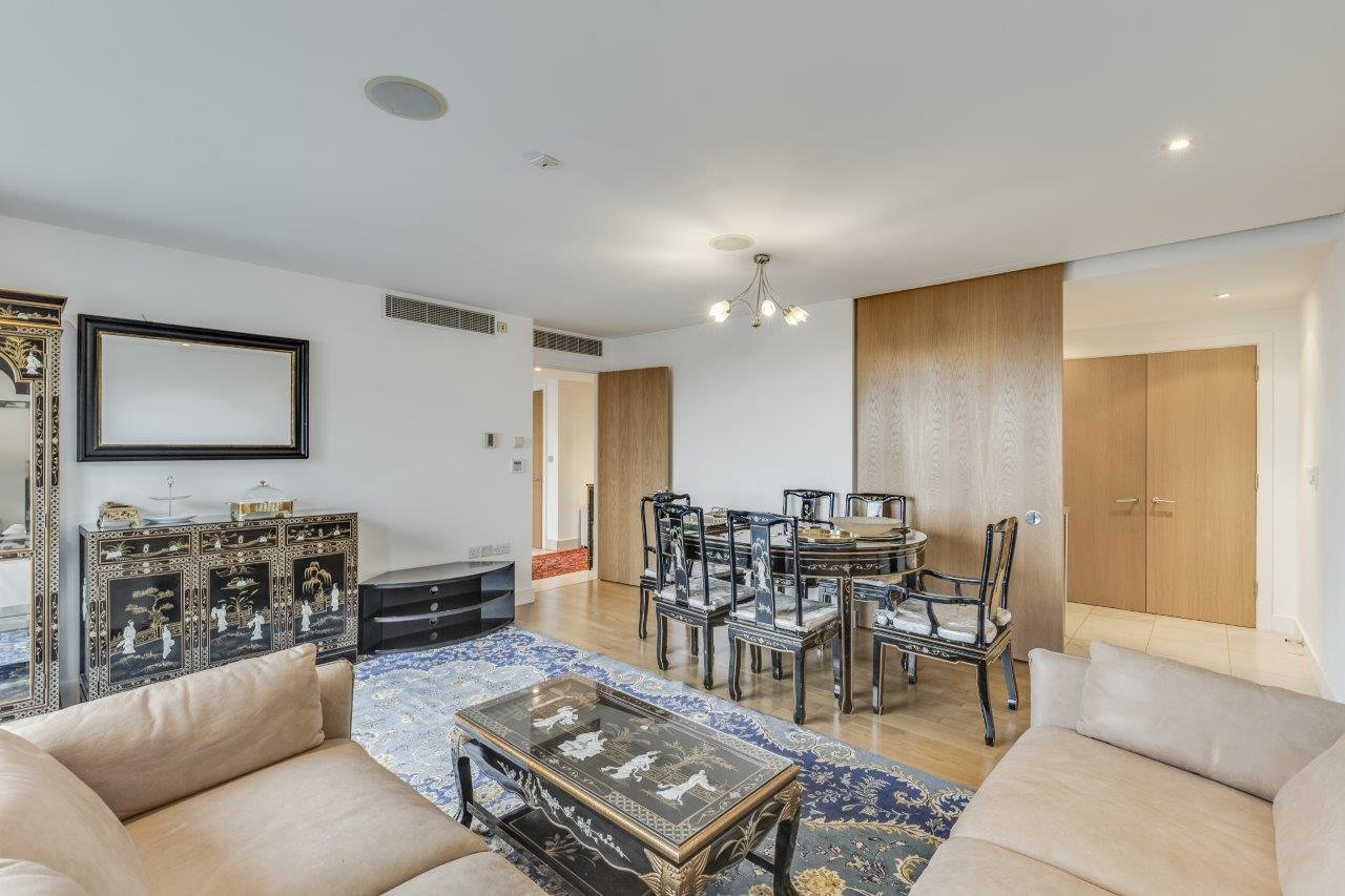 The apartment features bright, generous living space with a south-facing balcony. The interiors are designed and finished to a high specification. It comprises a spacious reception with separate kitchen, principle bedroom with en-suite bathroom, two further double bedrooms and a family bathroom. Additional benefits include underground parking, 24 hour concierge and a private balcony.